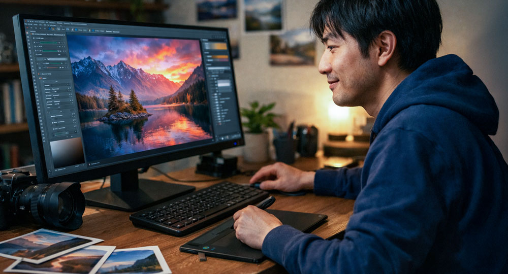 レタッチは、他の人にはない自分だけのスタイルを作る手段になります。好きな色、光、構図を取り入れて、自分の感性を写真で表現できます。